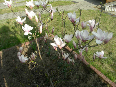 Hier noch ein kleiner Frühlingsbote: meine Magnolie steht in voller Blüte.